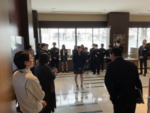 青木マイスター・ハイスクールCEOの所属するSCREENホールディングスの企業理念を印字し、廣江社長に贈呈させていただきました。贈呈式では垣内会長にもお越しいただき、気さくに生徒に話しかけてくださいました。