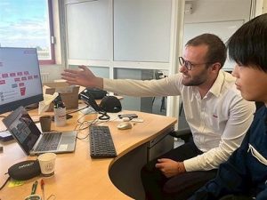 2週目から3週目にかけては、フランスのYanmar Construction Equipment Europe S.A.S.(日本企業の現地法人)でのインターンシップを実施し、フランスの建設機械の生産方式や働き方を学んだり、同企業で企業トレーニングを受ける学生との交流を行ったりしました。