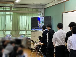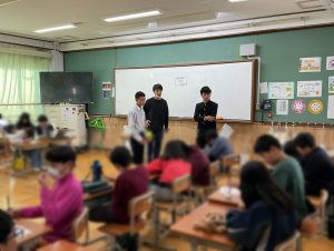 本校が取り組む卵殻を配合したバイオプラスチックについて、京都市立北白川小学校で機械工学部の生徒6名が出前授業を実施しました。